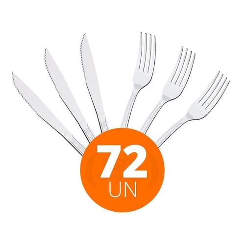 OBS: Veja na descrição os itens que acompanham o jogo.COMPONENTES DO KIT:36 Faca para Churrasco 4 Búzios em Aço Inox - Tramontina 2375040436 Garfo de Mesa em Aço Inox Búzios - Tramontina 23762400Faca para Churrasco 4 Búzios em Aço Inox - Tramontina 23750404Garantia: 90 dias para vícios ou defeitos de fabricação- Ideal para Restaurante, Lancheria, Paderia, Linha Doméstica, Residência, Gourmet;- Talher produzido em aço inox que mantém a beleza, a higiene e a durabilidade.- Lâmina da faca tem maior durabilidade do fio devido ao tratamento térmico.- Pode ir à máquina de lavar louças facilitando seu dia a dia.- Peso Líquido: 0,032 kg.- Peso Bruto: 0,035 kg.- Dimensões Produto : 3cmA x 19cmL x 20cm P.Garfo de Mesa em Aço Inox Búzios - Tramontina 23762400Garantia: 90 dias para vícios ou defeitos de fabricação- Ideal para Restaurante, Lancheria, Paderia, Linha Doméstica, Residência, Gourmet;- Certificação NSF - Os produtos da Linha Búzios são certificados pela National Sanitation Foundation NSF , organização reconhecida como a autoridade internacional em segurança alimentar e práticas de higiene.- Pode ir à máquina de lavar louças facilitando seu dia a dia.- Peso Líquido: 0,020 kg.- Peso Bruto: 0,020 kg.- Dimensões Produto: 1,8cm A x 2,2cm L x 18,77cm P.