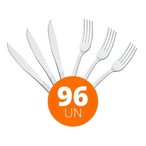 OBS: Veja na descrição os itens que acompanham o jogo. COMPONENTES DO KIT: 48 Faca para Churrasco 4 Búzios em Aço Inox - Tramontina 23750404 48 Garfo de Mesa em Aço Inox Búzios - Tramontina 23762400 Faca para Churrasco 4 Búzios em Aço Inox - Tramontina 23750404 : 90 dias para vícios ou defeitos de fabricação - Ideal para Restaurante, Lancheria, Padaria, Linha Doméstica, Residência, Gourmet;- Talher produzido em aço inox que mantém a beleza, a higiene e a durabilidade. - Lâmina da faca tem maior durabilidade do fio devido ao tratamento térmico. - Pode ir à máquina de lavar louças facilitando seu dia a dia. - Peso Líquido: 0,032 kg. - Peso Bruto: 0,035 kg. - Dimensões Produto : 3cmA x 19cmL x 20cm P. Garfo de Mesa em Aço Inox Búzios - Tramontina 23762400 : 90 dias para vícios ou defeitos de fabricação - Ideal para Restaurante, Lancheria, Padaria, Linha Doméstica, Residência, Gourmet; - Certificação NSF - Os produtos da Linha Búzios são certificados pela National Sanitation Foundation NSF , organização reconhecida como a autoridade internacional em segurança alimentar e práticas de higiene. - Pode ir à máquina de lavar louças facilitando seu dia a dia. - Peso Líquido: 0,020 kg. - Peso Bruto: 0,020 kg. - Dimensões Produto: 1,8cm A x 2,2cm L x 18,77cm P. Marca: Não Informado