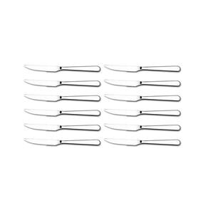 Com peças robustas e imponentes, a linha de talheres Gourmet traz sofisticação à mesa. A faca de churrasco possui serra mais afiada para carnes ou outros alimentos mais resistentes. A estrutura e o cabo em aço inox superpolido tornam a peça altamente durável e resistente, não correndo risco de oxidar e podendo inclusive ir à máquina de lavar louça. Outro diferencial é o revestimento temperado que não deixa a faca arranhar o prato. De fabricação 100% nacional, os produtos da linha Gourmet aliam qualidade, beleza e preço justo. Este conjunto contém 12 peças. Material: Aço Inox Composição: 12 Faca de Churrasco Linha: Gourmet
