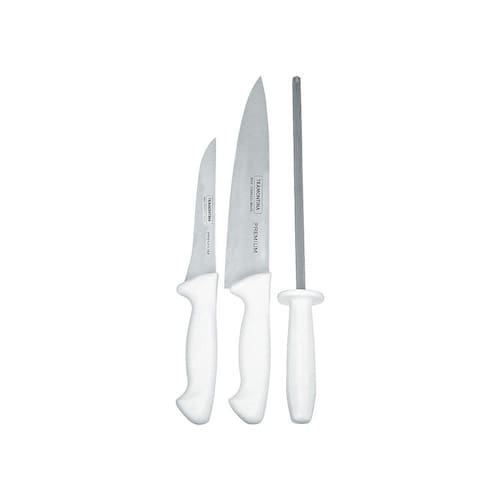 PRINCIPAIS CARACTERÍSTICAS: As facas da Linha Premium têm design moderno e o cabo anatômico de polipropileno é texturizado, oferecendo conforto e segurança durante o manuseio. O corte dos alimentos é facilitado pelo fio de alta durabilidade devido ao tratamento térmico aplicado nas lâminas de aço inox.