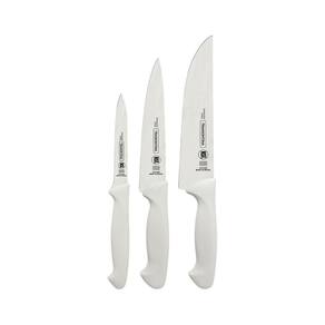 Jogo de Facas 3Pçs Premium Branco Aço Inox Tramontina Para você preparar as refeições do dia a dia com praticidade você precisa contar com o jogo de facas Tramontina Premium com lâminas em aço inox e cabos de polipropileno branco 3 peças. Com esse jogo você equipa sua cozinha com peças que possuem design moderno, cabo anatômico texturizado e fio de alta durabilidade. O conforto e segurança durante o manuseio são garantidos e os itens podem ser lavados na máquina de lavar louças. São três modelos de facas especificas para cada uso, que garantem ainda mais qualidade e facilidade no corte de diferentes alimentos Informações Gerais As lâminas de aço inox tem maior durabilidade do fio devido ao tratamento térmico. Os cabos de polipropileno possuem resistência e durabilidade. Podem ir à máquina de lavar louças facilitando seu dia a dia. Especificações: Marca: Tramontina Modelo: Jogo de Facas 3 peças Premium Branco Aço Inox Linha: Premium Quantidade de Peças : 3 Cor: Branco : 3 meses Marca: Não Informado Ean: 7894947560405