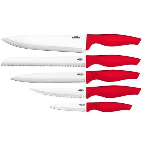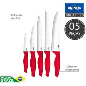 Jogo de Facas 5 Peças em Aço Inox com cabo em Polipropileno Cross - Brinox As facas são ferramentas essenciais em qualquer cozinha, e o Jogo de Facas Cross é a escolha perfeita para quem busca qualidade, durabilidade e design. Contém cinco peças, oferecendo tudo que você precisa para cortar, picar e fatiar com precisão. Cada faca é cuidadosamente projetada para proporcionar cortes precisos, eficientes tornando o preparo dos alimentos uma tarefa simples e prazerosa. As lâminas das facas são fabricadas com materiais de alta qualidade garantindo uma alta durabilidade, os cabos são ergonômicos oferecendo conforto durante o uso.