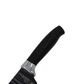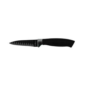 Jogo de Facas 6 Peças Aço Inox Com Descascador Preto Conjunto conta com seis peças de revestimento antiaderente, lâminas afiadas e de design de ângulo com o cabo ergonômico para garantir maior precisão, desempenho e o uso seguro das lâminas. Peças de aço inox com grande durabilidade e de alta qualidade.Lâminas selecionadas para usos específicos tornando esse conjunto adequado para uso em todos seus preparativos no dia a dia da sua cozinha. Especificações Técnicas: Dimensões aproximadas: (C) 21cm (L) 36cm (A) 3cm. Produto com Embalagem. Peso aproximado: 530g Composição: Aço Inox e Plástico. Cor: Preto.Recomendações:Mantenha sua faca sempre afiada e seca.Resistente ao uso em máquina de lavar.Produto cortante e perfurante.Mantenha fora do alcance das crianças. Cuidados:Lave com detergente neutro e enxágue com água limpa em abundância.Para secar, utilize um pano seco e macio.Evite o uso de produtos abrasivos. Itens inclusos no Pacote:1 Faca de Cozinha - 32,5cm (Com o Cabo)1 Faca para Fatiar – 33 cm (Com o Cabo)1 Faca para Chef – 32,5 cm (Com o Cabo)1 Faca de Aparar – 19cm (Com o Cabo)1 Faca universal- 23,5 cm(Com o Cabo)1 Descascador de legumes – 14 cm (Com o Cabo)