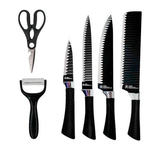 Jogo de Facas 6 Peças com Tesoura e Descascador Preto