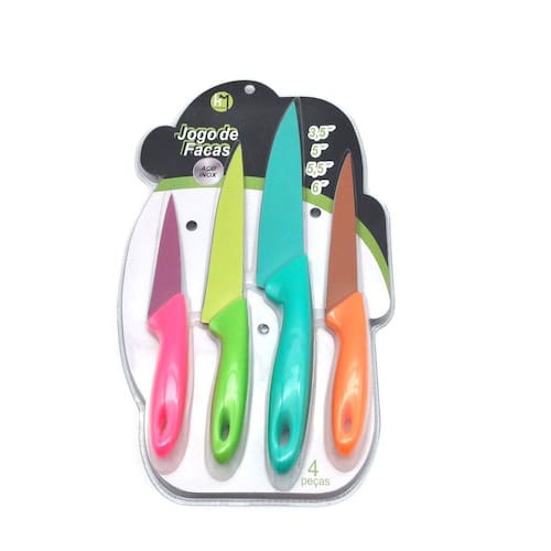 Kit 4 Facas Coloridas Em Aço Inoxidável Utilidades Cozinha - Home & More Conjunto de 4 facas coloridas Home & More DESCRIÇÃO: