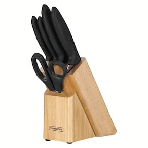 Você vai transformar os encontros na sua casa em uma verdadeira experiência com o jogo de facas Tramontina Plenus com lâminas em aço inox cabos de polipropileno preto e suporte de madeira 6 peças da Linha Plenus. Muito versáteis e modernos, as facas podem ser em diferentes momentos, desde o preparo dos alimentos ao de mesa. As seis peças possuem cabos na cor preta de polipropileno e lâminas em aço inox, que são resistentes e confortáveis no elegante suporte de madeira embeleza sua cozinha e ainda organiza as peças. Podem ser utilizadas na máquina de lavar louças. São as escolhas perfeitas para tornar seus momentos ainda mais incríveis!