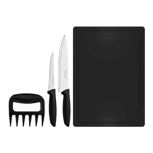 Jogo De Facas Com Tábua 4 Peças Tramontina Plenus 23498076 Preto Jogo de Facas com Tábua 4 Peças Tramontina Plenus 23498076 Preto - Características Gerais do Produto: Dimensões AxLxP (mm): 350x250 (tábua) Material: Aço Inox e Polipropileno Pode ir à Máquina de Lavar Louças?: Sim Tratamento do Talher: Tratamento Térmico