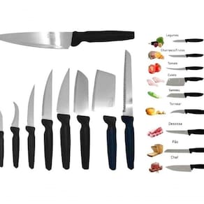 Jogo De Facas Faqueiro 9 Peças Plenus Aço Inox Com o jogo de facas plenus com lâminas em aço inox e cabos de polipropileno preto 9 peças, você terá a solução completa de facas para utilizar nos mais diversos tipos de cortes e ocasiões gastronômicas. As peças combinam com qualquer cozinha e a deixam mais bonita e clássica, pois seus cabos são na elegante cor preta. As lâminas produzidas em aço inox por terem sido submetidas a tratamento térmico, oferecem maior durabilidade e resistência. PRINCIPAIS DESTAQUES: - Fáceis de limpar- Lâminas em aço inox e cabo anatômico- Sim, resistente a máquina de lavar louças