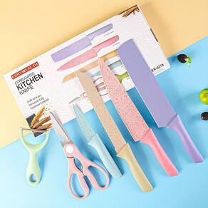 Jogo De Facas Gourmet Colorida 4 Facas, Tesoura Descascador Jogo de Facas Colorido Inox com 6 Peças