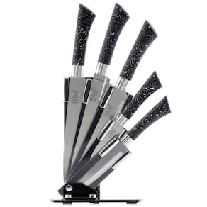 Jogo De Facas Inox Suporte Acrílico 6 Peças Preto Pigmentado