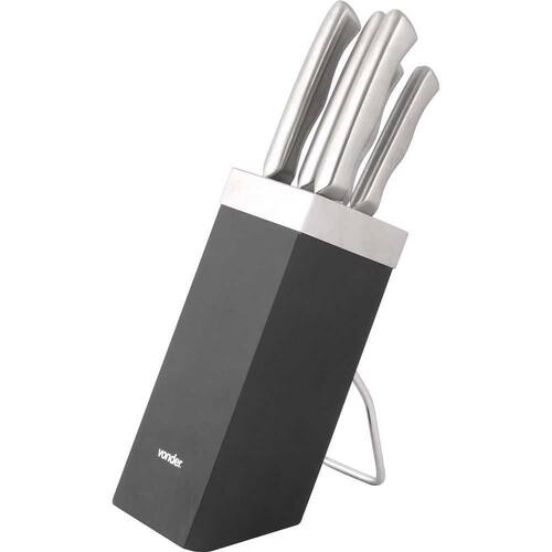 Possui suporte que facilita a armazenagem. Facas confeccionadas em aço inox, proporcionando ótimo acabamento e longa vida útil.