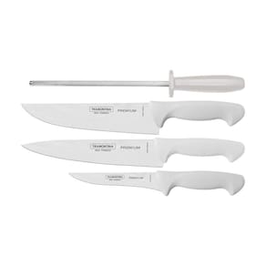 Jogo de Facas para Churrasco Tramontina em Aço Inox com Cabo Polipropileno 4 Peças Todo mundo aprecia um bom churrasco, seja em família ou entre amigos, é sempre uma boa pedida. Para garantir a excelência no preparo e execução desta deliciosa tradição, a escolha certa é o Jogo de Facas para Churrasco Tramontina em Aço Inox com Cabo Polipropileno 4 Peças da linha Churrasco. As facas com lâminas em aço inox, cabos de polipropileno e chaira de aço carbono cromado você terá a certeza de um churrasco perfeito e ótimos momentos!