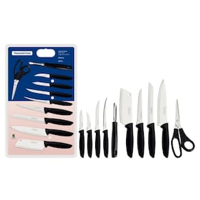 Sua cozinha ganhará maior funcionalidade e versatilidade com o jogo de facas Tramontina Plenus com lâminas em aço inox e cabos de polipropileno preto 10 peças. Com peças essencias para o preparo das suas refeições do dia a dia, como facas, cutelo, descascador e tesoura, ele vai deixar o preparo de suas receitas ainda mais fácil. As lâminas das peças são produzidas em aço inox com tratamento térmico e cabos de polipropileno, garantem alto poder de corte, resistência e maior durabilidade. Um jogo que ainda pode ser levado à máquina de louças e que vai facilitar suas tarefas, seja na hora de cozinhar ou limpar!