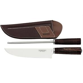 Se você é apaixonado por culinária e está sempre buscando utensílios que facilitem seu dia a dia na cozinha, você precisa conhecer o jogo de facas Tramontina com lâminas em aço inox e cabos de madeira tratada Polywood castanho com chaira 02 peças. Com lâminas em aço inox tratado termicamente, essas facas possuem uma durabilidade do fio excepcional, o que significa que você não precisará se preocupar em afiar as facas com tanta frequência. A chaira inclusa é revestida com cromo-duro e possui uma haste de aço carbono, o que garante uma afiação precisa e durável, para que você possa continuar usando suas facas por muito tempo. Os cabos de madeira tratada Polywood são resistentes a impactos e alta temperatura, garantindo maior durabilidade e segurança durante o uso. E a bainha em couro oferece proteção ao fio da faca, permitindo que você transporte e armazene suas facas com mais segurança. E para facilitar ainda mais a sua vida, essas facas podem ser lavadas na máquina de lavar louças, permitindo que você se concentre no que realmente importa: aprimorar suas habilidades culinárias!