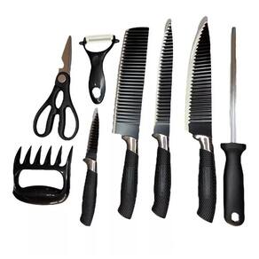 jogo de facas premium inox preta profissional titanium gourmet 8 peças