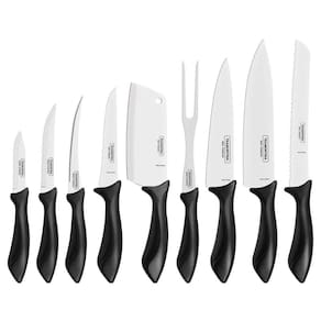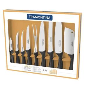 Jogo de Facas Tramontina Affilata em Aço Inox e Cabo de Polipropileno Preto 9 Peças.
