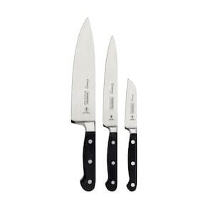 Um kit prático, compacto e perfeito para você explorar todas as possibilidades na hora de preparar bons pratos em casa. Assim é o jogo de facas Tramontina Century com lâminas em aço inox e cabos em policarbonato e fibra de vidro 3 peças. Aquelas receitas especiais, com sabor que só você consegue, ficarão ainda mais atrativas graças às peças com lâmina forjada de aço inox de altíssima qualidade que, aliada ao eficiente tratamento térmico diferenciado, garantindo maior resistência do fio e precisão no corte. Os cabos de policarbonatos reforçado com fibra de vidro garantem alta durabilidade, equilíbrio e segurança, enquanto os cabos ergonômicos proporcionam maior segurança, equilíbrio e conforto na hora do corte. Além disso, podem ir à máquina de lavar louças, facilitando seu dia a dia. Aproveite a oportunidade de equipar sua cozinha com o melhor e garantir um preparo muito mais eficiente e de alta performance para seus pratos!