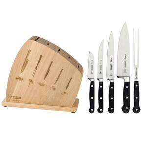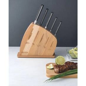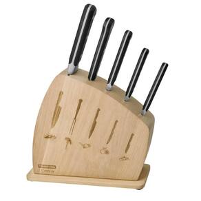 Conteúdo: 1 suporte para facas, 1 faca chef, 1 garfo trinchante, 1 faca utility, 1 faca para churrasco e 1 faca para legumes e frutas;
