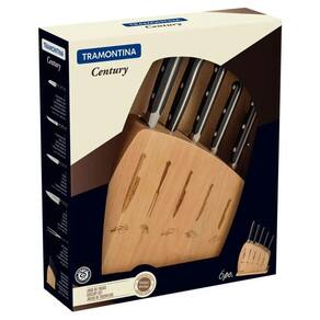 Jogo de Facas Tramontina Century em Aço Inox com Suporte em Madeira 6 Peças.