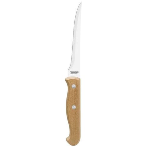 Jogo De Facas Tramontina Churrasco Inox Madeira 2 Peças Com o jogo de facas tramontina churrasco com lâminas em aço inox e cabos em madeira natural 2 peças, você estará preparado para atender os cortes que vão desde a preparação ao momento de servir os mais diversos tipos de carnes. As facas tem lâminas produzidas em aço inox e possuem um fio de corte altamente durável, devido ao tratamento térmico. Além disso, proporciona um charme especial na hora do uso, pois os cabos são em madeira natural e combinam tanto com ambientes externos quanto internos. Para facilitar a hora dos cortes, a faca para carne possui uma marcação exclusiva na lâmina. Um jogo perfeito para quem preza por itens que aliem beleza e durabilidade Conteúdo: 1 - faca para desossar 5 1 - faca chef 7 Informações gerais As lâminas de aço inox têm maior durabilidade do fio devido ao tratamento térmico. Os cabos são de madeira natural. Rebites de alumínio. Recomendações de uso Antes da primeira utilização, lave bem as peças e seque-as. Produtos cortantes e perfurantes: tenha cuidado ao manusear e mantenha fora do alcance das crianças. Para maior durabilidade dos produtos recomenda-se secar bem antes de guardar, mesmo após lavagem em máquina. Recomenda-se o uso de tábuas de polipropileno ou madeira da tramontina para maior durabilidade do fio das facas. Não é indicado o uso das facas para o corte de alimentos congelados. Mantenha sempre sua faca afiada utilizando os afiadores da tramontina. Para descarte dos produtos e embalagens siga as orientações de reciclagem vigentes. Especificações técnicas Altura 35,6 cm Largura 1,9 cm Comprimento 12,5 cm Peso 145 gr Estas especificações são referentes à embalagem. 90 dias para vícios ou defeitos de fabricação. Marca: Não Informado Ean: 7891112272682