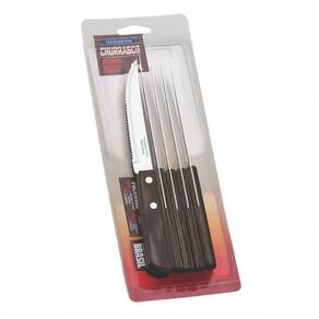 Jogo De Facas Tramontina Churrasco Polywood Castanho 6 Peças No , o churrasco é sinônimo de tradição, comemoração e alegria. Talvez seja por isso que o churrasco brasileiro seja um dos mais respeitados do mundo. No país, essa tradição começou nos pampas da sul, mesmo lugar onde nasceu a Tramontina. E é isso que faz a gente ter tanto orgulho de ter uma linha de produtos completa com um excelente aço, madeira polywood e muita tecnologia. Tudo para você fazer bonito e fazer o seu churrasco e o mundo, nunca mais pararem de evoluir. Recomendações de Uso: Antes do uso: Antes de utilizar o , remova as eventuais etiquetas e lave-o com água e detergente.Durante o uso: Durante a lavagem use somente esponja macia, outros tipos de produtos, como palha de aço, poderão riscar ou prejudicar o brilho do aço inox. Enxágue bem a peça a fim de remover totalmente os resíduos dos produtos de limpeza, que por serem abrasivos, podem danificar o ós o uso: Após a lavagem enxugue a peça, pois as substâncias químicas contidas na água poderão causar manchas. Sempre que possível use água quente, pois renova o brilho do talher. Evite o das peças com superfícies quentes, pois podem provocar a descoloração do produto. Quando usar a máquina de lavar louça, recomendamos retirar o talher logo que tenha terminado o ciclo enxaguar, a fim de que os mesmos sejam secados manualmente.- Tenha cuidado ao Manusear produtos cortantes e perfurantes e mantenha-os fora do alcance de crianças.- Foto meramente ilustrativa. Informações Adicionais: