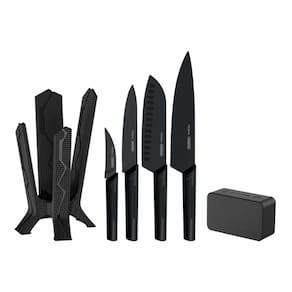 Para atender ao estilo de vida das pessoas conectadas, desenvolvemos o jogo de facas Tramontina Nygma com lâmina em aço inox e cabos de polipropileno preto com suporte e caixa de som 06 peças.Um jogo que quebra os paradigmas, pois vem com caixa de som acoplada e garante experiências incríveis na hora de preparar suas refeições. Um jogo de facas com lâminas de aço inox sublimadas em preto, que garante um excelente poder de corte e maior capacidade de deslizamento do alimento. Os cabos são em polipropileno texturizado e contam com proteção antimicrobiana, que inibem o crescimento de fungos e bactérias. Para que você tenha momentos especiais na sua cozinha, trazemos um suporte em termoplástico biodegradável, desenvolvido com tecnologia de impressão 3D, tornando o design diferenciado e personalizável. Escolha Tramontina e faça bonito em todos os momentos na cozinha!