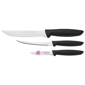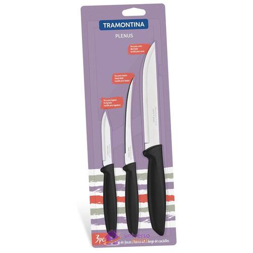 Jogo de Facas Tramontina Plenus com Lâminas em Aço Inox e Cabos de Polipropileno Preto 3 Peças Deixe seu dia a dia mais prático e charmoso com o Jogo de Facas Tramontina Plenus com Lâminas em Aço Inox e Cabos de Polipropileno Preto 3 Peças da Linha Plenus. São três peças ideiais para atender aos cortes de diversos tipos de alimentos. Produzidas com materiais de qualidade, os cabos são de polipropileno na cor preta e as lâminas em aço inox. São facas que facilitam as tarefas na cozinha, atendendo diferentes usos: participando do preparo dos alimentos. Resistentes e confortáveis, podem ser levados à lavar louças. Informações Gerais Lâminas em aço inox. Cabos de polipropileno.