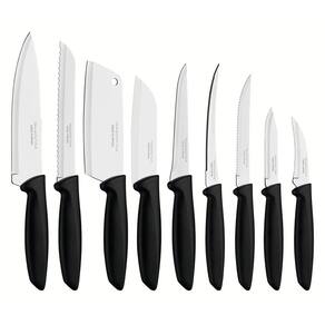Jogo de Facas Tramontina Plenus com Lâminas em Aço Inox e Cabos de Polipropileno Preto 9 Peças Com o jogo de facas Tramontina Plenus com lâminas em aço inox e cabos de polipropileno preto 9 peças, você terá a solução completa de facas para utilizar nos mais diversos tipos de cortes e ocasiões gastronômicas. As peças combinam com qualquer cozinha e a deixam mais bonita e clássica, pois seus cabos são na elegante cor preta. As lâminas produzidas em aço inox por terem sido submetidas a tratamento térmico, oferecem maior durabilidade e resistência. Elas são fáceis de limpar e podem ser lavadas na máquina de lavar louças. Com peças únicas e de muita importância na cozinha, o jogo de facas é a escolha perfeita para você. Facas de qualidade e beleza você encontra com a Tramontina!