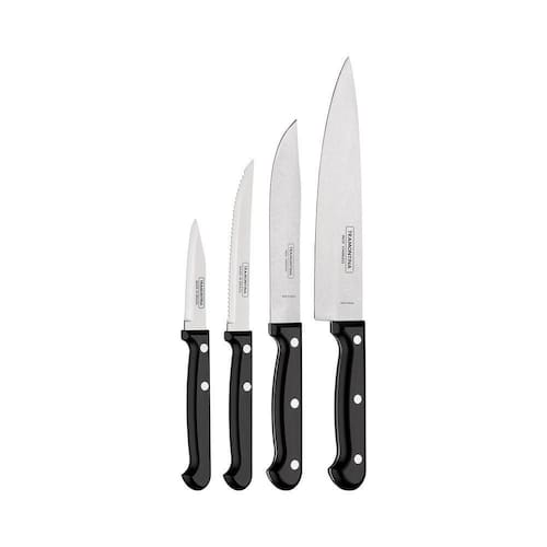Existem facas que são essenciais para o sucesso das nossas receitas. Com o Jogo de Facas Tramontina Ultracorte com Lâminas em Aço Inox e Cabos de Polipropileno Preto 4 Peças da Linha Ultracorte você vai encontrar talheres que se adaptam às diferentes funções na cozinha. As 4 peças possuem cabos em polipropileno na cor preta, confortável no manuseio e com proteção antimicrobiana, inibindo a ação de bactérias e fungos. As lâminas em aço inox são resistentes e possuem tratamento térmico, que dão maior durabilidade ao fio. Para facilitar ainda mais o dia-a-dia, as peças podem ser levadas à máquina de lavar louças.