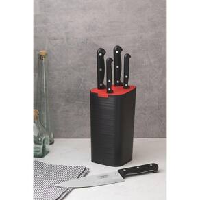 As lâminas de aço inox têm maior durabilidade do fio devido ao tratamento térmico. Os cabos de polipropileno possuem maior resistência e durabilidade. Os cabos possuem proteção antimicrobiana que inibe o crescimento de fungos e bactérias, proporcionando benefícios em higiene e redução de microorganismos que causam contaminação. O suporte de polipropileno permite que você organize suas facas de acordo com sua preferência. Podem ir à máquina de lavar louças facilitando seu dia a dia.