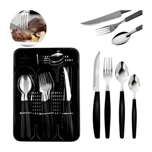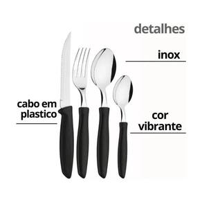 Jogo de Faqueiro Preto Garfo Faca Colher com Porta Talher Jogo de Faqueiro Preto Garfo Faca Colher com Porta Talher ===================================== Uma opção completa e prática para quem deseja unir funcionalidade, organização e elegância à mesa.