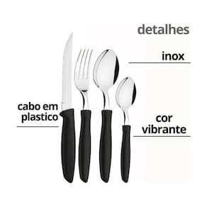 A escolha ideal para quem procura resistência, praticidade e beleza em um só produto, trazendo mais charme e comodidade às refeições ===================================== Contém: 06 Colher de Mesa 06 Colher Sobremesa 06 Garfos 06 Facas 01 Porta Talher