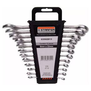 Jogo de chave combinada Starfer com 12 peças, indicada para aperto e desaperto de porcas, parafusos quadrados e sextavados.