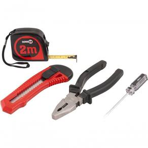 Jogo De Ferramentas Com 4 Peças Aço Carbono Jf040 - Nove54 Conteúdo da embalagem 1 Jogo de ferramentas com 4 peças, sendo: 1 estilete 18 mm, 1 alicate universal aço carbono 6, 1 chave de fenda aço carbono 1/8 x 3 e 1 trena 2 m Aplicações e dicas de uso Indicado para manutenções e reparos em geral. Uso leve. DETALHES TÉCNICOS