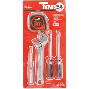 Jogo De Ferramentas Com 5 Peças Aço Carbono Jf043 - Nove54 Conteúdo da embalagem 1 Jogo de ferramentas com 5 peças, sendo: 1 chave de fenda aço carbono 3/16 x 4, 1 chave de fenda cruzada/phillips aço carbono 3/16 x 4, 1 chave ajustável aço carbono cromada 8, 1 chave teste 1/8 x 5.1/2 e 1 trena 3 m Aplicações e dicas de uso Indicado para manutenções e reparos em geral. Uso leve. DETALHES TÉCNICOS