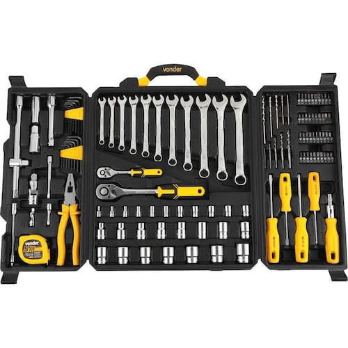 JOGO DE FERRAMENTAS CROMO VANADIUM 128 PEÇAS VONDER