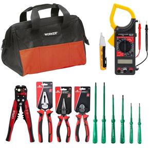 Jogo de Ferramentas Eletricista Com Bolsa De Acordo NR-10, Indicado para Eletricistas, Técnicos e Engenheiros