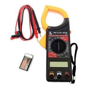- 01 alicate amperímetro com multímetro portátil com visor de lcd dt - 266 possui estojo de transporte, pontas de prova e bateria - marca lotus.