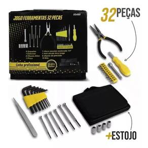 O kit inclui 04 soquetes, 01 extensor, 08 chaves allen, 01 pinça, 01 chave encaixe sextavado 1/4, 01 mini alicate bico longo, 06 chaves de precisão e 10 bits. Essas ferramentas são ideais para diversos tipos de trabalhos, desde apertar e soltar parafusos até realizar pequenos reparos em objetos do dia a dia.