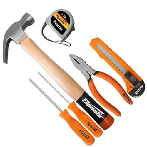 Jogo De Ferramentas Para Trabalhos Domésticos Com 6 Peças - 1354055 - Sparta Jogo de Ferramentas para Trabalhos Domésticos com 6 Peças - 1354055 - SPARTA Descrição: O Jogo de Ferramentas para Trabalhos Domésticos da Sparta contém martelo-unha com cabo em madeira, faca 18mm com lamina retrivel, alicate universal, chave de fenda bilateral, chave de fenda bilateral e 1 trena com 2 Metros de comprimento.