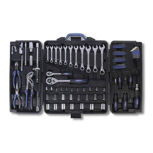 Itens inclusos: 01 Barra de Extensão de ¼” 50mm 01 Conexão articulada ¼” 01 Conexão articulada ½” 01 Barra de extensão ¼” flexível 150mm 01 Soquete de Vela com Encaixe de ½” 16mm 01 Soquete de Vela com Encaixe de ½” 21mm 01 Adaptador de 3 vias ¼ para ½ 01 Barra de Extensão de “ ¼ 100mm 01 Alicate de Corte 6” 01 Alicate Bomba D’Água 9,5” 01 Alicate de Bico 6” 01 Barra de Extensão de ½” 125mm 11 Chaves Combinadas 01 Catraca Reversível com encaixe de ½” 01 Catraca Reversível com encaixe de ¼” 11 Soquetes com Encaixe de ¼ 15 Soquetes com Encaixe de ½ 40 Bits variados 25mm 08 Chaves Hexagonais 02 Chaves de Fenda 02 Chaves de Phillips 01 Chave Multiuso Catraca 01 Maleta