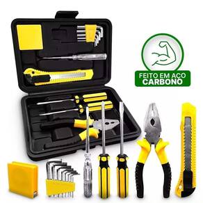 O Jogo de ferramentas com Maleta Titanium, é composto por 11 peças e acompanha uma maleta de plastico reforçado. Acompanha uma variedade de ferramentas para uso em casa como, 5 tamanhos de chave allen, uma trena, chave teste, estilete, alicate universal, chave phillips e fenda. Suas Ferramentas são fabricadas em aço carbono de alta qualidade, o alicate possui cabo emborrachado, uma trena de 1 metro com um design inovador de facil manuseio.Esse Kit de ferramentas é perfeito para se ter em casa, além de ser uma maleta de ferramentas completa, acompanha ferramentas que irão te ajudar no seu dia a dia como chave phillips, fenda e allen para apertar e soltar parafusos, um estilete que proporciona precisão no corte, uma trena de um metro e um alicate universal que pode ser utilizado de diversas formas. Esse Kit de Ferramentas Completo com Maleta é ideal para hobby.Dados técnicos:Marca: Titanium Heavy DutyCor: Preto e AmareloMaterial Ferramentas: Aço Carbono.Cabo Alicate: EmborrachadoQuantidade: 11 PeçasDimensões: A x L x C: 5 X 14,2 X 20,2 CMRef.:06816itens que compõe o Kit:- 5 Chave Allen: 2 à 6 MM- 1 Trena de 1 Metro- 1 Chave teste- 1 Estilete- 1 Alicate Universal 6- 1 Chave Phillips- 1 Chave Fenda Marca: Não Informado Ean: 7908200008488