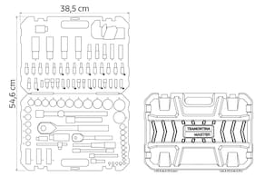 As peças são fabricadas em aço cromo vanádio, garantindo alta resistência mecânica, enquanto os bits e pontas são produzidos em aço ferramenta S2, material reconhecido pela sua dureza extrema que evita o desgaste precoce. O jogo conta com catracas reversíveis de 1/2" e 1/4", além de uma ampla variedade de soquetes sextavados curtos e longos, atendendo a diferentes profundidades e acessos.