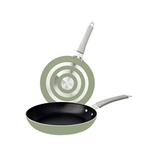 Complete sua cozinha e tenha alta qualidade para o preparo das suas refeições diárias, com o jogo de frigideiras Tramontina em alumínio com revestimento interno em Starflon Premium e externo siliconado verde 02 peças. Ideais para você saltear legumes, grelhar um bife ou fazer aquele omelete cremoso, as peças tem produção em alumínio com espessura de 3 milímetros e proporcionam um cozimento rápido e uniforme dos alimentos. Seu revestimento interno é em antiaderente Starflon Premium, material que não gruda, é fácil de limpar, mais durável e não prejudicial a sua saúde. O cabo é metálico com proteção de silicone, reduz a propagação de calor e garante um manuseio muito mais confortável e seguro. Na parte externa ela é siliconada, o que garante alta resistência e permite que seja levada à máquina de lavar louças, facilitando seu dia a dia na cozinha!