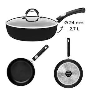 Apresentamos o Jogo de Frigideiras Tramontina Mônaco Induction com Starflon Premium Preto com espessura especial de 3 milímetros que proporciona o cozimento de maneira uniforme e rápida. Produzida em alumínio com revestimento interno e externo de antiaderente Starflon Premium, os alimentos não grudam em sua superfície, é mais durável e não é prejudicial à sua saúde, pois é livre de PFOA. Seu cabo metálico com proteção de silicone reduz a propagação de calor, aumentando a segurança e melhorando seu manuseio. Pode ir à máquina de lavar louças facilitando seu dia a dia.