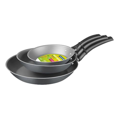 Jogo de Frigideiras Tramontina Turim em Alumínio com Revestimento Antiaderente Starflon T1 e Cabos Baquelite Grafite 3 Peças O Jogo de Frigideiras Tramontina Turim em Alumínio com Revestimento Antiaderente Starflon T1 e Cabos Baquelite Grafite 3 Peças vai garantir qualidade e praticidade para sua cozinha. As três peças que compõem o conjunto são produzidas em alumínio e atendem às diversas necessidades nas receitas do dia a dia. Todas possuem revestimento interno e externo antiaderente Starflon T1, que evita que os alimentos grudem na superfície e as torna muito fáceis de limpar. Os cabos são de baquelite antitérmico, que evitam queimaduras, protegendo suas mãos e garantindo um manuseio confortável. Um conjunto incrível, que vai garantir uma cozinha muito mais completa!