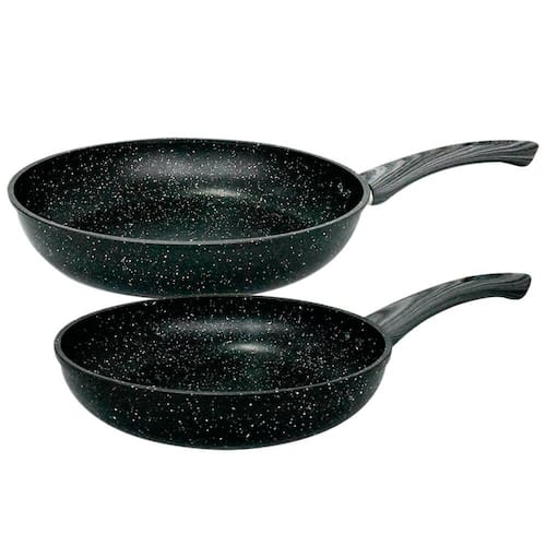 Características: Marca: Casambiente Referência: AL133 AL134 Modelo: Zebra Material da Frigideira: Alumínio Material do Cabo: Baquelite Soft-Touch Revestimento Interno: Cerâmico Espessura: 2,5mm Cor: Preto Quantidade: 2 peças