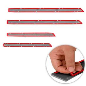 Pintados na cor Azul Netuno com a mesma tinta usadas nas montadoras, práticos e de fácil instalação, onde é apenas necessário limpar o locar e aplicar o produto que já acompanha fita dupla face 3M.