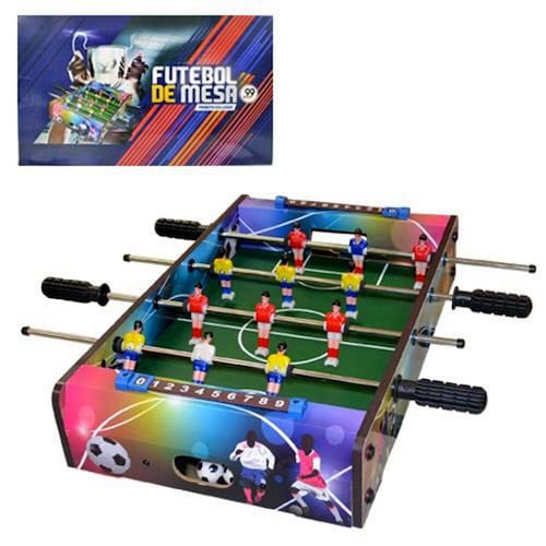 Jogo De Futebol De Mesa Toto Pebolim Super Craque Jogo- Futebol de mesa Ofutebol de mesaé uma ótima maneira de se divertir, independentemente da sua idade. Ele é perfeito tanto para a diversão, como a prática de concentração e coordenação motora e uma ótima maneira de oferecer ao ambiente um toque descontraído e divertido. Além de decorar o ambiente pode proporcionar momentos muito agradáveis com a família e os amigos. - Com marcador de pontuação Medidas: 50cm de comprimento 32cm de largura 10cm de altura Tamanho livre do campo: 40cm de comprimento, 29cm de largura, 07cm de altura. Material da mesa: Madeira MDF Itens: 01 manual de instruções para montagem 04 barras com 03 jogadores 27 partes/peças para a montagem da mesa 16 parafusos 01 chave allen 02 bolinhas Ean: 2015012700013