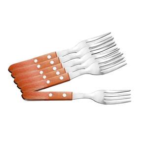 Jogo de garfo inox cabo de madeira 06 peças cozinha bar Talheres com qualidade e beleza
